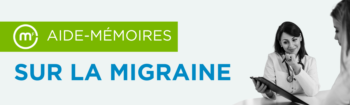 Pour soutenir les médecins dans leur pratique quotidienne, Médecins francophones du Canada a développé deux aide-mémoires cliniques fondés sur les recommandations les plus récentes de la Société canadienne des céphalées et de l’International Headache Society. Le premier porte sur le traitement de crise — du choix de la molécule à l’évaluation de la réponse thérapeutique, en passant par la prévention de la céphalée médicamenteuse. Le second est consacré à la prévention — indications, options pharmacologiques et non pharmacologiques, suivi et évaluation des bénéfices.