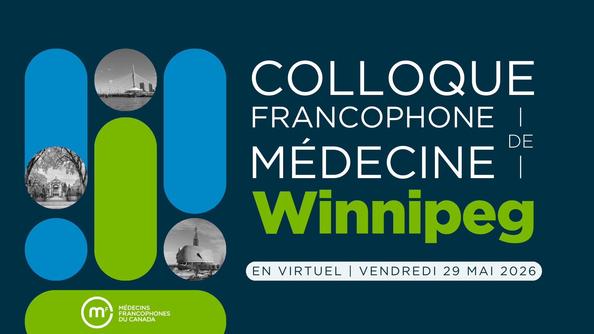 Médecins francophones du Canada est très fière de cette toute première édition du Colloque francophone de médecine de Winnipeg élaborée avec des médecins francophones du Manitoba engagés en formation continue. Cette formation a une visée interdisciplinaire. Nous vous convions à y participer en grand nombre!