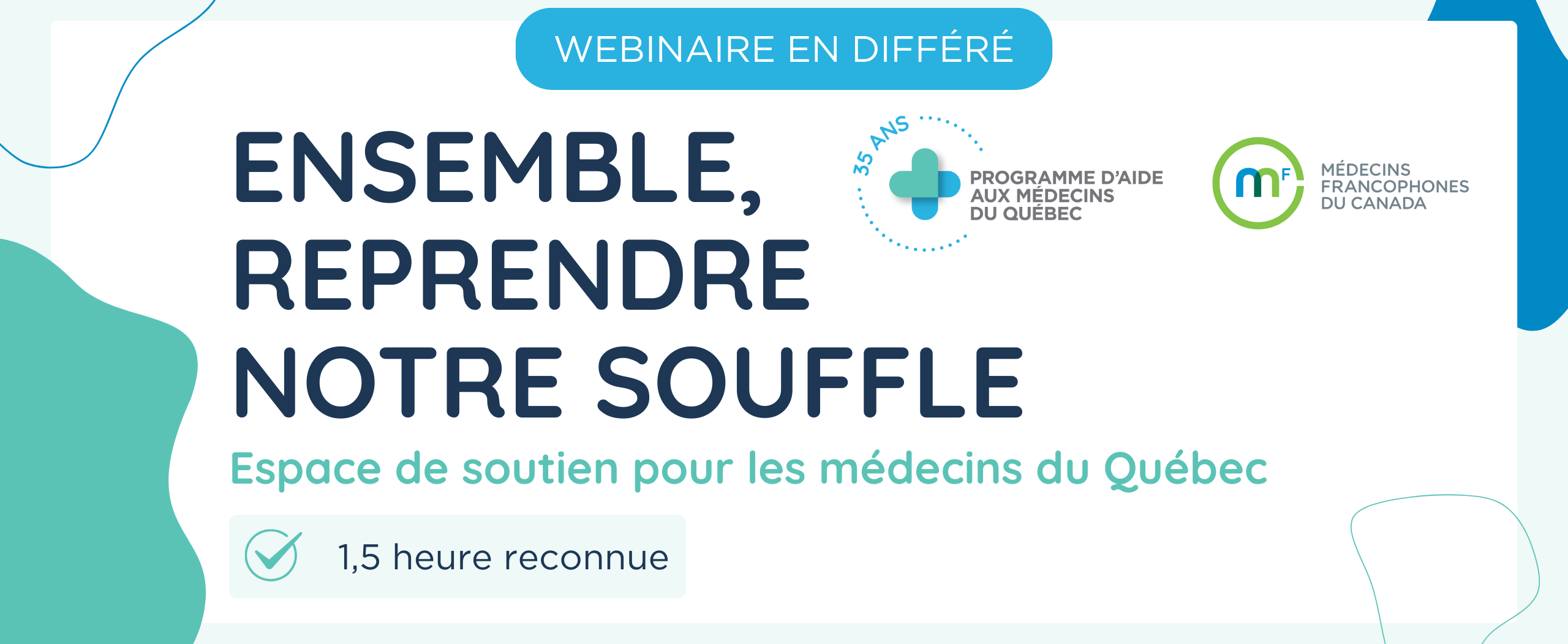 Dans le contexte actuel, marqué par de nombreux changements pour la profession médicale, le Programme d’Aide aux médecins du Québec (PAMQ), en collaboration avec Médecins francophones du Canada, vous invite à participer à un webinaire gratuit, spécialement conçu pour offrir un espace de soutien, de discussion et des outils pratiques.