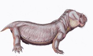 Ensuite, la vie sur Terre est apparue dans l’eau, or on sait que le son se propage 4 fois plus vite dans l’eau que dans l’air. C’est donc naturellement que les premiers requins, leurs ancêtres, ont développé leur ouïe pour la chasse. Mais ce ne sont pas les seuls puisque notre ancêtre à tous, êtres humains, le Pristerodon Makayi (image ci-contre) développe la base de la structure de l’oreille interne telle que nous la connaissons, à savoir, les osselets.