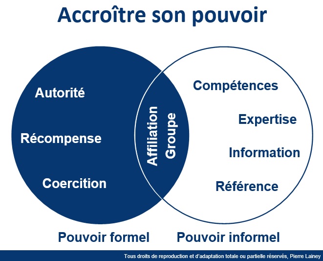 Le pouvoir formel, pourtant, n’est pas suffisant. Pour accroître son influence, le pouvoir informel est essentiel. Alors que le pouvoir formel est déterminé par le poste occupé, le pouvoir informel s’acquiert avec effort : compétences, expertise, cueillette d’information et références sont autant de cartes à son jeu et autant de manières d’avancer dans la réalisation de vos enjeux et de ceux de vos alliés.